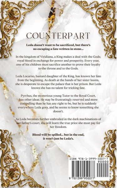 Leda doesn't want to be sacrificed, but there's no escaping a fate written in stone... In the kingdom of Viridiana, a king makes a deal with the gods; royal blood in exchange for power and prosperity. Every year, one of his children must sacrifice another to prove their loyalty to the throne and to the gods. Leda Locarno, bastard daughter of the king, has known her fate from the beginning. As death at the hands of her sister looms, she is desperate to escape the palace that is her prison. But Leda knows she has no talent for tricking fate. Pyrrhus, the mysterious young tutor to the royal court, has other ideas. He may be frustratingly reserved and more compelling than he has any right to be, but he is suddenly everywhere Leda goes, and he seems to know something she doesn't. As Leda becomes further embroiled in the dark machinations of her father's court, she will learn the true price she must pay for her freedom. Blood will be spilled... but in the end, it won't just be Leda's.