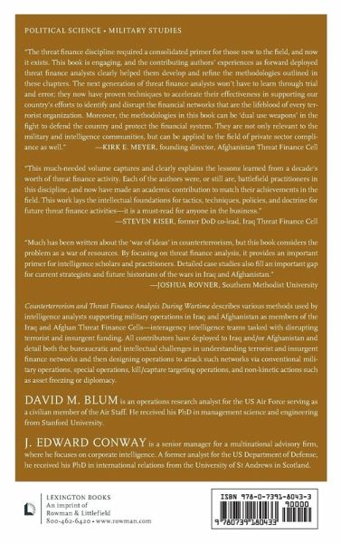 Foreword David D. McKiernan, General (Retired), U.S. Army Chapter One: Introduction: The Threat Finance Cell J. Edward Conway Chapter Two: Intelligence Analysis: An Operator's Perspective Colonel Clayton O. Sheffield, U.S. Army Chapter Three: Where Counterinsurgency Meets Counter Threat Finance Brian A. Gordon Chapter Four: From People to Processes: Collecting Intelligence That Matters David M. Blum & Brian A. Gordon Chapter Five: Al-Qa'ida in Iraq's Financial Ledgers Benjamin Bahney and Howard J. Shatz Chapter Six: Cost Accounting: Auditing the Taliban in Helmand Province, Afghanistan Brian A. Gordon and J. Edward Conway Chapter Seven: Using Financial Data to Analyze Terrorist Motivations: The Case of Al-Qa'ida in Iraq's Payrolls Benjamin Bahney and Howard J. Shatz Chapter Eight: Social Network Analysis: Understanding Threat Financial Networks David M. Blum and Brian A. Gordon Chapter Nine: Scenario Planning: The "Master" of Spin Boldak and The Chaman Border Crossing David Blum and J. Edward Conway