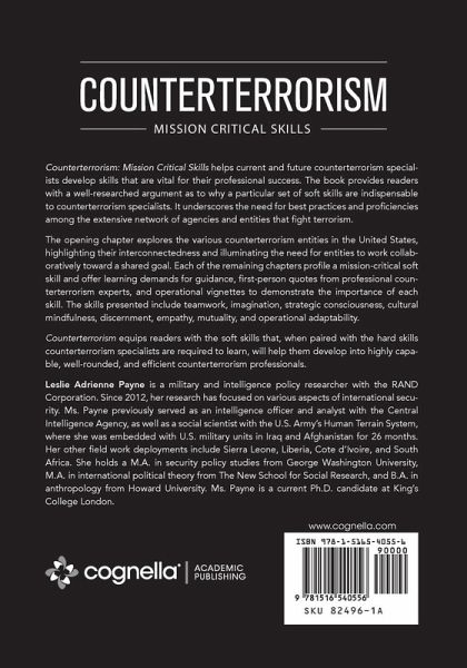 Counterterrorism: Mission Critical Skills helps current and future counterterrorism specialists develop skills that are vital for their professional success. The book provides readers with a well-researched argument as to why a particular set of soft skills are indispensable to counterterrorism specialists. It underscores the need for best practices and proficiencies among the extensive network of agencies and entities that fight terrorism. The opening chapter explores the various counterterrorism entities in the United States, highlighting their interconnectedness and illuminating the need for entities to work collaboratively toward a shared goal. Each of the remaining chapters profile a mission-critical soft skill and offer learning demands for guidance, first-person quotes from professional counterterrorism experts, and operational vignettes to demonstrate the importance of each skill. The skills presented include teamwork, imagination, strategic consciousness, cultural mindfulness, discernment, empathy, mutuality, and operational adaptability. Counterterrorism equips readers with the soft skills that, when paired with the hard skills counterterrorism specialists are required to learn, will help them develop into highly capable, well-rounded, and efficient counterterrorism professionals.