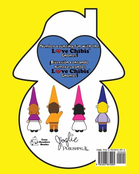Number counting fun with the Love Chibis Gnomes! Diversión contando números con los Love Chibis Gnomos! Love Chibis Counting Book/Libro de números is an easy reader bilingual English-Spanish numbers book for children ages 2-6 with with fun gnome characters from 1 to 10! The book has colorful illustrations that help keep young readers engaged while learning. It measures 8" x 10" which makes it easy to take along with you.