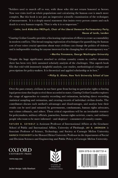 A popular myth emerged in the late 1990s: in 1900, wars killed one civilian for every eight soldiers, while contemporary wars were killing eight civilians for every one soldier. The neat reversal of numbers was memorable, and academic publications and UN documents regularly cited it. The more it was cited, the more trusted it became. In fact, however, subsequent research found no empirical evidence for the idea that the ratio of civilians to soldiers killed in war has changed dramatically. But while the ratios may not have changed, the political significance of civilian casualties has risen tremendously. Over the past century, civilians in war have gone from having no particular rights to having legal protections and rights that begin to rival those accorded to states. The concern for civilians in conflict has become so strong that governments occasionally undertake humanitarian interventions, at great risk and substantial cost, to protect strangers in distant lands. I n the early 1990s, the UN Security Council authorized military interventions to help feed and protect civilians in the Kurdish area of Iraq, Somalia, and Bosnia. And in May 2011, Barack Obama 's National Security Advisor explained the United States' decision to support NATO's military intervention in these terms "When the president made this decision, there was an immediate threat to 700,000 Libyan civilians in the town of Benghazi. We've had a success here in terms of being able to protect those civilians." Counting Civilian Casualties aims to promote open scientific dialogue by high lighting the strengths and weaknesses of the most commonly used casualty recording and estimation techniques in an understandable format. Its thirteen chapters, each authoritative but accessible to nonspecialists, explore a variety of approaches, from direct recording to statistical estimation and sampling, to collecting data on civilian deaths caused by conflict. The contributors also discuss their respective advantages and disadvantages, and analyze how figures are used (and misused) by governments, rebels, human rights advocates, war crimes tribunals, and others. In addition to providing analysts with a broad range of tools to produce accurate data, this will be an in valuable resource for policymakers, military officials, jou rnalists, human rights activists, courts, and ordinary people who want to be more informed--and skeptical--consumers of casualty counts.