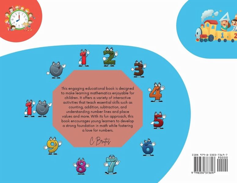 This engaging educational book aimed at making mathematics enjoyable for children. It incorporates interactive activities that teach foundational skills in counting, number tracing, fill in missing numbers, addition, subtraction, and concepts like number lines and place values. Through a fun and engaging approach, the book seeks to instill a passion for mathematics in young learners while ensuring they develop essential mathematical skills.