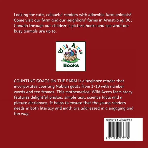 Counting Goats on the Farm is an engaging beginner reader that introduces counting from 1 to 10 using number words and ten frames, all while exploring the world of Nubian goats. Set on Wild Acres farm, this educational story blends delightful photos, simple text, science facts, and a picture dictionary to support young readers' literacy and math skills. Recommended for independent readers aged 4-7 by Lexile and ATOS, it's also perfect for younger children who adore animals, making it an excellent addition to any child's library.