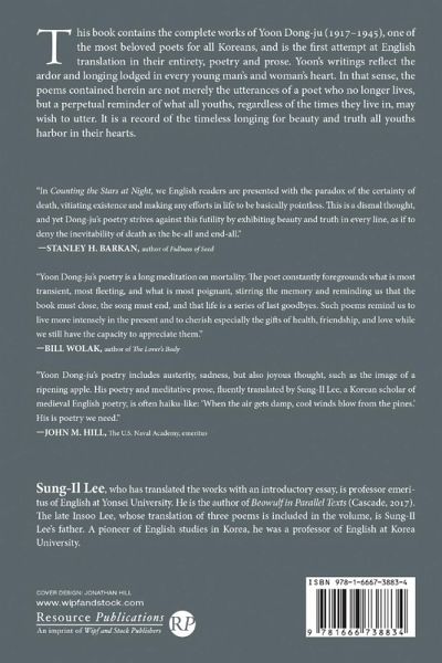 This book contains the complete works of Yoon Dong-ju (1917-1945), one of the most beloved poets for all Koreans, and is the first attempt at English translation in their entirety, poetry and prose. Yoon's writings reflect the ardor and longing lodged in every young man's and woman's heart. In that sense, the poems contained herein are not merely the utterances of a poet who no longer lives, but a perpetual reminder of what all youths, regardless of the times they live in, may wish to utter. It is a record of the timeless longing for beauty and truth all youths harbor in their hearts.