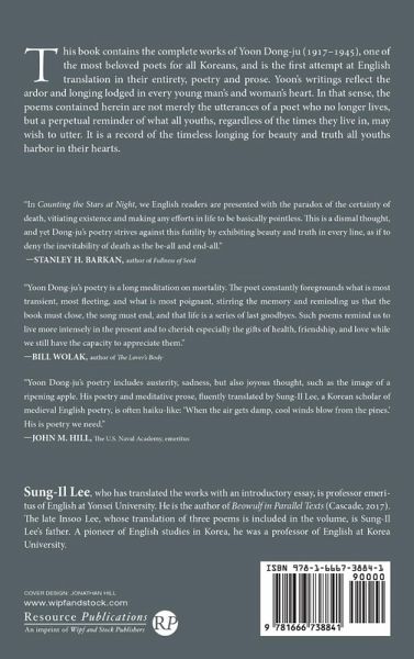 This book contains the complete works of Yoon Dong-ju (1917-1945), one of the most beloved poets for all Koreans, and is the first attempt at English translation in their entirety, poetry and prose. Yoon's writings reflect the ardor and longing lodged in every young man's and woman's heart. In that sense, the poems contained herein are not merely the utterances of a poet who no longer lives, but a perpetual reminder of what all youths, regardless of the times they live in, may wish to utter. It is a record of the timeless longing for beauty and truth all youths harbor in their hearts.