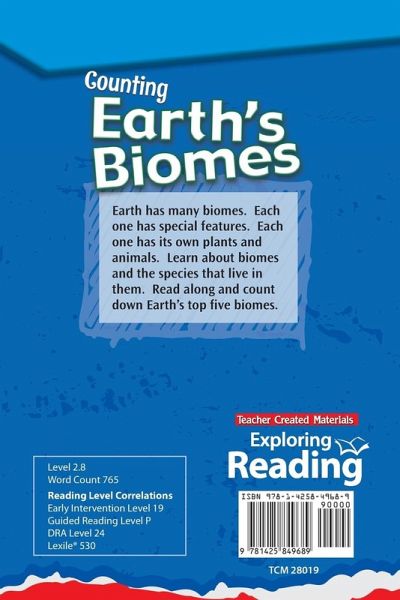 Featuring TIME For Kids content, this nonfiction reader introduces students to five of Earth's biomes: ocean, forest, desert, grassland, and tundra. This title will keep students engaged in reading as they build their critical literacy skills.