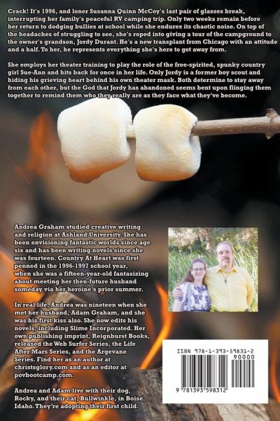 Crack! It's 1996, and loner Susanna Quinn McCoy's last pair of glasses break, interrupting her family's peaceful RV camping trip. Only two weeks remain before her return to dodging bullies at school while she endures its chaotic noise. On top of the headaches of struggling to see, she's roped into giving a tour of the campground to the owner's grandson, Jordy Durant. He's a new transplant from Chicago with an attitude and a half. To her, he represents everything she's here to get away from. She employs her theater training to play the role of the free-spirited, spunky country girl Sue-Ann and hits back for once in her life. Jordy is a former boy scout and hiding his grieving heart behind his own theater mask. He determines to bite his tongue and avoid the intriguing but unpleasant Sue-Ann. Yet the God Jordy has abandoned seems bent upon flinging them together to remind them who they really are as they face what they've become.