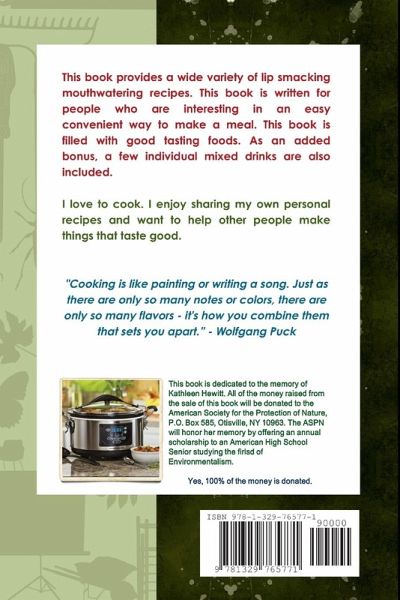 A Crock-Pot is the perfect solution for a family with a busy schedule who still want to sit down for meals together. In this book, you will find a multitude of assorted mouth watering recipes. In today's modern society both parents are working to support their household. Using a Crock-Pot to cook while you work is a huge time saver.