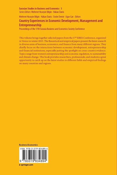 This volume brings together selected papers from the 17 th EBES Conference, organized in Venice in winter 2015. The theoretical and empirical papers present the latest research in diverse areas of business, economics, and finance from many different regions. They chiefly focus on the interactions between economic development, entrepreneurship and financial institutions, especially putting the spotlight on cross-country evidence. Topics range from women's entrepreneurship and economic regulation, to sustainability and climate change. This book provides researchers, professionals, and students a great opportunity to catch up on the latest studies in different fields and empirical findings on many countries and regions.
