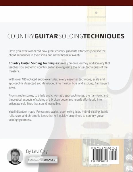 Country Guitar Soloing Techniques takes you on a journey of discovery that teaches you authentic country guitar soloing using the actual techniques of the masters. With over 100 notated audio examples, every essential technique, scale and approach is dissected and developed into musical licks and exciting, flamboyant solos. From simple scales, to triads and chromatic approach notes, the harmonic and theoretical aspects of soloing are broken down and rebuilt effortlessly into articulate solo lines that sound incredible.