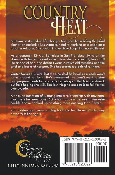 When a small-town cowboy falls for a big-city girl, lifestyle differences are the least of their troubles. As a teenager, Kit Beaumont was homeless in San Francisco, living on the streets with her mom and sister. Now she's the head chef of an exclusive Los Angeles hotel, but she turns her back on her success to work as a cook on a cattle ranch in the Arizona desert. While trying not to relive old mistakes and her past grief, she holds on tightly to her secrets. Rancher Carter McLeod knows highly rated chefs don't take positions like preparing meals for a bunch of cowboys without a good reason. A reason he doesn't know. His challenge is to keep from falling for the cute blond while he waits for the day she returns to a life where she hobnobbed with celebrities instead of dirt-covered ranch hands. Kit has no intention of jumping into a relationship with any man, much less her new boss, but she couldn't have cooked up anything more enticing than Carter. As feared, this cowboy romance comes to a scorching end when her hidden past comes striding back into her life. And now Carter may never trust her again.
