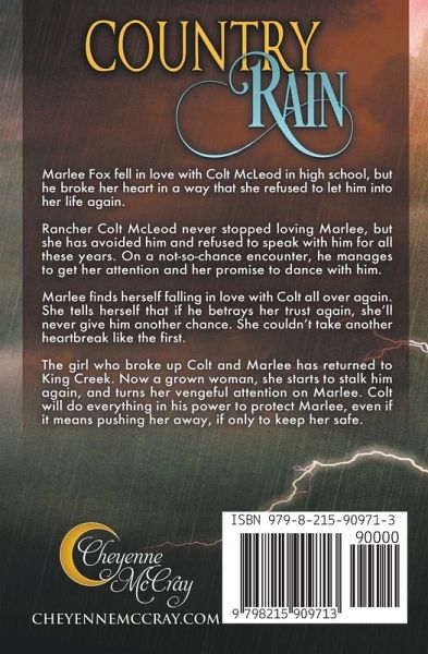 In this cowboy romance, young love is given a second-and final-chance. Over the passing years, Rancher Colt McLeod never stopped loving Marlee Fox, but she has refused to speak to him since high school. On a not-so-accidental encounter, he captures her attention and the promise of a dance. Marlee falls in love with Colt all over again but knows she can't take another heartbreak like the first. If he betrays her trust one more time, they are over forever. The girl who broke up Colt and Marlee has returned to the small town of King Creek. Now a grown woman, she stalks him and turns her vengeful attention on Marlee. Colt will do everything in his power to protect Marlee, even if it means pushing her away to keep her safe.