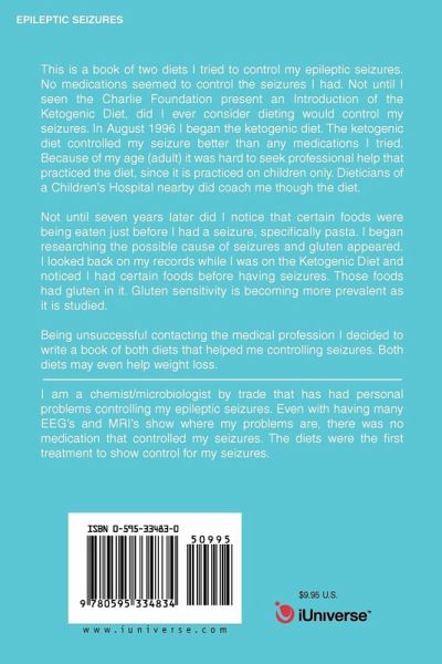 This is a book of two diets I tried to control my epileptic seizures. No medications seemed to control the seizures I had. Not until I seen the Charlie Foundation present an Introduction of the Ketogenic Diet, did I ever consider dieting would control my seizures. In August 1996 I began the ketogenic diet. The ketogenic diet controlled my seizure better than any medications I tried. Because of my age (adult) it was hard to seek professional help that practiced the diet, since it is practiced on children only. Dieticians of a Children's Hospital nearby did coach me though the diet. Not until seven years later did I notice that certain foods were being eaten just before I had a seizure, specifically pasta. I began researching the possible cause of seizures and gluten appeared. I looked back on my records while I was on the Ketogenic Diet and noticed I had certain foods before having seizures. Those foods had gluten in it. Gluten sensitivity is becoming more prevalent as it is studied. Being unsuccessful contacting the medical profession I decided to write a book of both diets that helped me controlling seizures. Both diets may even help weight loss.