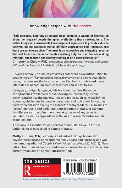 "Clear, succinct and attractive in format, Couple Therapy: The Basics by a leader in the field, Molly Ludlam, provides an excellent resource for beginning therapists and supervisors alike to think psychoanalytically about couples, couple therapy and couple supervision."