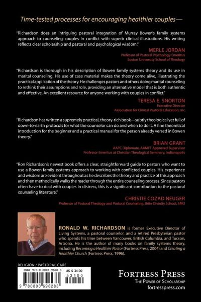Couples in Conflict describes the nature of the emotional processes leading to difficulties and how a minister/ counselor can be a resource to help couples in conflict. The minister/counselor will be able to help them improve their lives personally, as well as their relationship and family life. By extension, couples will also develop skills that will improve their work life and their life in community. The book provides practical and specific approaches to helping these couples and the issues that a minister must deal with in order to be useful to them.