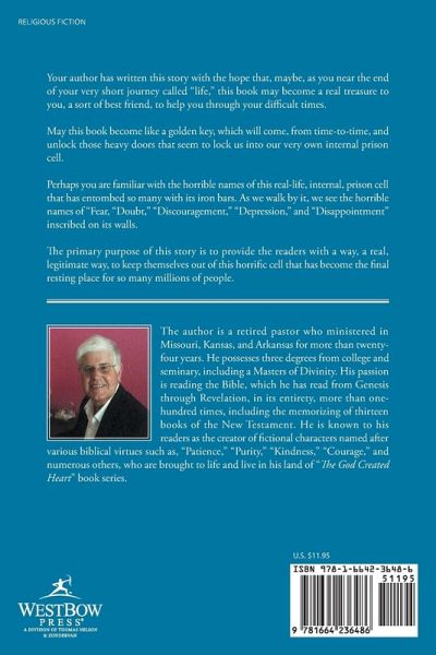Your author has written this story with the hope that, maybe, as you near the end of your very short journey called "life," this book may become a real treasure to you, a sort of best friend, to help you through your difficult times. May this book become like a golden key, which will come, from time-to-time, and unlock those heavy doors that seem to lock us into our very own internal prison cell. Perhaps you are familiar with the horrible names of this real-life, internal, prison cell that has entombed so many with its iron bars. As we walk by it, we see the horrible names of "Fear, "Doubt,"…mehr