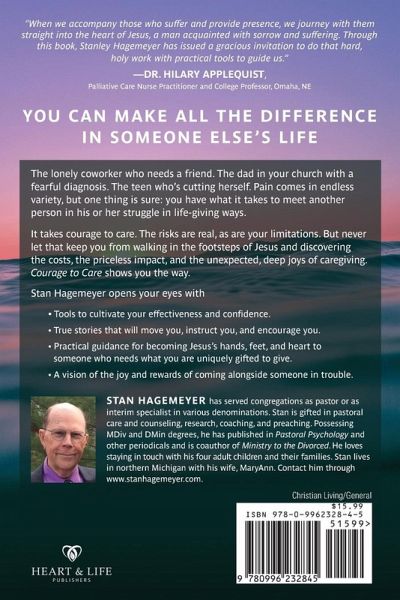 Courage to Care is a practical book that is a joy to read. It provides a spiritual framework for practices and attitudes that empower ordinary people to be courageous and effective caregivers. The book is immensely practical and aimed at both clergy and lay persons. The author opens your eyes with: • Tools to cultivate your effectiveness and confidence, • True stories that will move you, instruct you, and encourage you, • Illustrations to help you understand a suffering person’s point of view, • Practical guidance for becoming Jesus’s hands, feet, and heart to someone who needs what you are uniquely gifted to give, • A vision of the joy and rewards of coming alongside someone in trouble. Stan Hagemeyer uses biblical models and contemporary stories to present the concepts in a form accessible for both clergy and lay persons. The reader will be equipped to go alongside suffering people in a ministry reframed within Jesus’ model. Both lay people and professional clergy reading this book will gain confidence in working effectively to help people with physical suffering, broken relationships, or other forms of trouble. This is a practical guide for anyone who wants to learn how to care for people who are suffering. The appendices provide specific training exercises and strategies that can be used by individuals or within a training course for caregivers. It takes courage to care. The risks are real, as are your limitations. But never let that keep you from walking in the footsteps of Jesus and discovering the costs, the priceless impact, and the unexpected, deep joys of caregiving. Courage to Care shows you the way. Table of Contents – Chapters: 1. Appreciating Suffering , 2. Crossing into Alien Territory, 3. Simple Gifts Make the Difference, 4. The Blessings Go Both Ways, 5. Shared Suffering and Intimate Bonds, 6. Discovering Jesus’s Presence, 7. What Happens to Faith under Pressure, 8. My Personal Journey toward Wholeness, Epilogue: The Conclusion God Is Making. Appendices- Resources (training exercises): A. Listening and Attending Skills, B. Practicing Mutual Giving and Receiving, C. Healthy Boundaries and Personal Coaching, D. Nurturing the Caregiver, Acknowledgments, Notes.