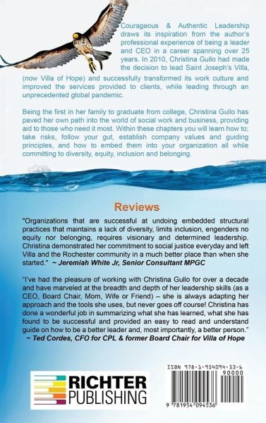 Courageous & Authentic Leadership draws its inspiration from the author's professional experience of being a leader and CEO in a career spanning over 25 years. In 2010, Christina Gullo had made the decision to lead Saint Joseph's Villa (now Villa of Hope) and successfully transformed its work culture and improved the services provided to clients, all while leading through an unprecedented global pandemic. Being the first in her family to graduate from college, Christina Gullo has paved her own path into the world of social work and business, providing aid to those who need it most. Within these chapters you will learn how to; take risks, follow your gut, establish company values & guiding principles and embed them into your organization, all while committing to diversity, equity, inclusion and belonging. Courageous & Authentic Leadership provides a personal journey of being a leader, the actions one can take to ensure this role is successful and impactful, and the qualities that will help inspire and shape an individual or organization.