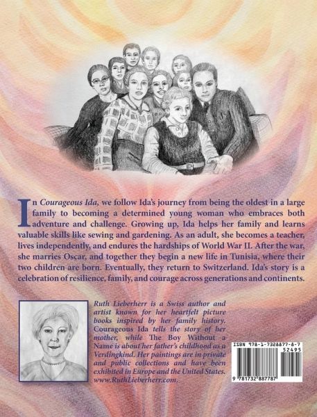 In Courageous Ida, we follow Ida's journey from being the oldest in a large family to becoming a determined young woman who embraces both adventure and challenge. Growing up, Ida helps her family and learns valuable skills like sewing and gardening. As an adult, she becomes a teacher, lives independently, and endures the hardships of World War II. After the war, she marries Oscar, and together they begin a new life in Tunisia, where their two children are born. Eventually, they return to Switzerland. Ida's story is a celebration of resilience, family, and courage across generations and continents.