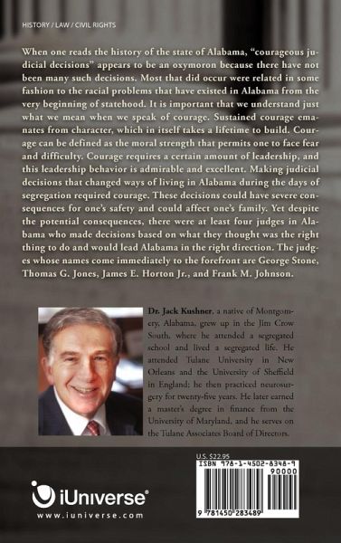 When one reads the history of the state of Alabama, "courageous judicial decisions" appears to be an oxymoron because there have not been many such decisions. Most that did occur were related in some fashion to the racial problems that have existed in Alabama from the very beginning of statehood. It is important that we understand just what we mean when we speak of courage. Sustained courage emanates from character, which in itself takes a lifetime to build. Courage can be defined as the moral strength that permits one to face fear and difficulty. Courage requires a certain amount of…mehr