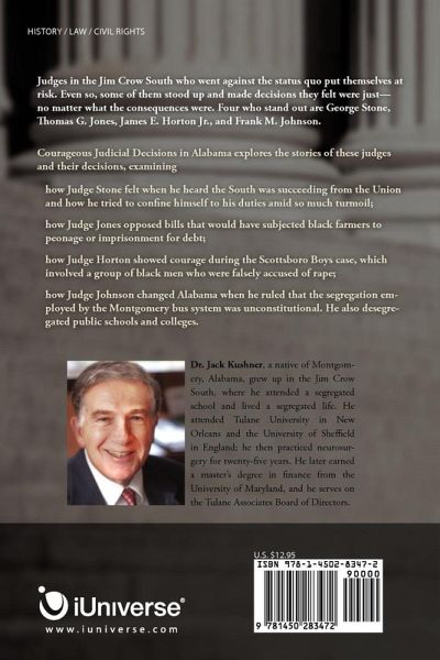 When one reads the history of the state of Alabama, "courageous judicial decisions" appears to be an oxymoron because there have not been many such decisions. Most that did occur were related in some fashion to the racial problems that have existed in Alabama from the very beginning of statehood. It is important that we understand just what we mean when we speak of courage. Sustained courage emanates from character, which in itself takes a lifetime to build. Courage can be defined as the moral strength that permits one to face fear and difficulty. Courage requires a certain amount of leadership, and this leadership behavior is admirable and excellent. Making judicial decisions that changed ways of living in Alabama during the days of segregation required courage. These decisions could have severe consequences for one's safety and could affect one's family. Yet despite the potential consequences, there were at least four judges in Alabama who made decisions based on what they thought was the right thing to do and would lead Alabama in the right direction. The judges whose names come immediately to the forefront are George Stone, Thomas G. Jones, James E. Horton Jr., and Frank M. Johnson.