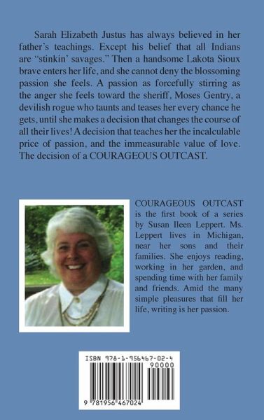 Sarah Elizabeth Justus has always believed in her father's teachings. Except his belief that all Indians are "stinkin' savages." Then a handsome Lakota Sioux brave enters her life, and she cannot deny the blossoming passion she feels. A passion as forcefully stirring as the anger she feels toward the sheriff, Moses Gentry, a devilish rogue who taunts and teases her every chance he gets, until she makes a decision that changes the course of all their lives! A decision that teaches her the incalculable price of passion, and the immeasurable value of love. The decision of a COURAGEOUS OUTCAST.