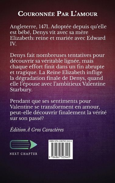 Angleterre, 1471. Adoptée depuis qu'elle est bébé, Denys vit avec sa mère Elizabeth: reine et mariée avec Edward IV. Denys fait nombreuses tentatives pour découvrir sa véritable lignée, mais chaque effort finit dans un fin abrupte et tragique. La Reine Elizabeth inflige la dégradation finale de Denys, quand elle l'épouse avec l'ambitieux Valentine Starbury. Pendant que ses sentiments pour Valentine se transforment en amour, peut-elle découvrir finalement la vérité sur son passé? Édition À Gros Caractères
