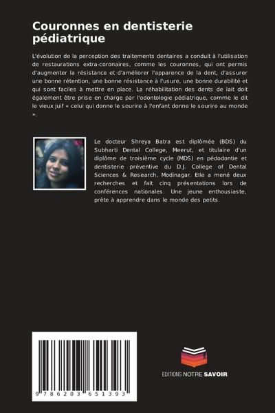 L'évolution de la perception des traitements dentaires a conduit à l'utilisation de restaurations extra-coronaires, comme les couronnes, qui ont permis d'augmenter la résistance et d'améliorer l'apparence de la dent, d'assurer une bonne rétention, une bonne résistance à l'usure, une bonne durabilité et qui sont faciles à mettre en place. La réhabilitation des dents de lait doit également être prise en charge par l'odontologie pédiatrique, comme le dit le vieux juif « celui qui donne le sourire à l'enfant donne le sourire au monde ».