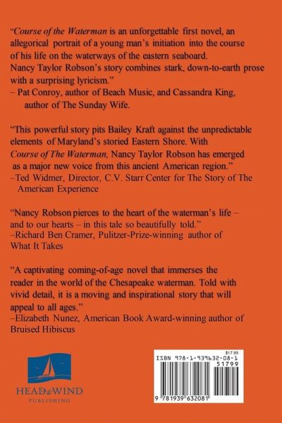 Seventeen-year-old Bailey Kraft, descended from a long line of Chesapeake waterman -- river royalty -- knows where he is going. He will "follow the water like his father, grandfather, and generations of men before him. The work is backbreaking and often dangerous yet framed by the breathtaking beauty of the Chesapeake; it is a bred-in-the-bone life. But it is also a dying livelihood. Fish stocks are plummeting and with them, the harvests. Watermen, unable to earn a living, are being forced to give up their time-honored way of life. Yet Bailey is a Kraft---river royalty---with the Kraft gift for finding fish coded into his genes. He has a sense of purpose and belonging, until the day his father shatters his lifelong plans. Suddenly, he must fight the people he loves most, including his best friend, to hang on to his birthright. Set on the Chesapeake Bay's Eastern Shore, Course of the Waterman is the coming-of-age story of Bailey Kraft; his tough and determined little sister, Hannah; his best friend, Booty; and Booty's bitter, alcoholic father, Tud. Bailey faces fear, loss, and wrenching changes; yet amidst it all, he glimpses the unexpected possibilities that life can offer. Like the Kraft men before him, Bailey has river water in his veins, and a peculiar talent for finding fish: the Krafts are river royalty. But every year the haul is less impressive, and supporting a family by fishing is becoming increasingly difficult. Early in the book Bailey's father Orrin announces that he wants his son to go to college, to have options that he didn't have. This change in plan is wholly unwelcome: Bailey had expected to fish full-time after finishing high school; he would have quit school to do so had he been allowed. But responding to his father's bombshell is only the first of a great many challenges Bailey must meet in the course of the story--hard work in difficult, sometimes life threatening circumstances not least among them. Bailey is surrounded by a handful of characters who are as vividly imagined as he is: his parents and younger sister and the Warrens, Tud and his son Booty, the latter more brother to Bailey than friend. R_obson, indeed, has fleshed out her characters and explored their interlocking relationships--all of which are changed during the course of this story--more fully than most authors can in twice as many pages. Robson's book explores the obligations of friendship and the bonds, stronger than rivalries and animosities, that hold together a community of people who need one another to survive--"the pull and haul of relationship, gift, and obligation." Like her characters, Robson grew up on the Chesapeake, and she worked for years as a deckhand on a coastal tug. (She tells her story in Woman in the Wheelhouse.) She couldn't have written this book the way she did without that experience. Readers like myself who aren't familiar with the life she describes--most of us, surely--will encounter some unfamiliar vocabulary here, but context is sufficient to get the meaning across. The first paragraph immerses the reader at once in the life of a Chesapeake waterman: "The trotline groaned over the roller as it came up out of the blue-black Elizabeth River on Maryland's Eastern Shore. Braced against the boat's wooden coaming, seventeen-year-old Bailey Kraft was poised, dip net ready, scanning for the bait twisted every eight feet or so into the mile-ong line. That was where the crab would be--if there were a crab. As he watched, a shadow rose from the dark water and came into focus, sharpening into olive shell and blue-green claws that clung to a frayed gray eel chunk tied to the line. When the crab broke the surface, Bailey leaned out, scooped it up, and dumped it into the bushel basket at his feet."
