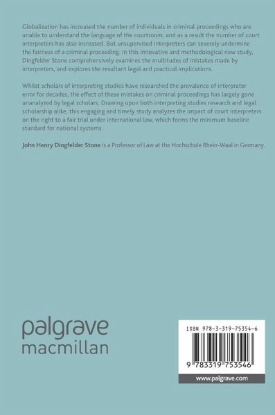 Whilst scholars of interpreting studies have researched the prevalence of interpreter error for decades, the effect of these mistakes on criminal proceedings has largely gone unanalyzed by legal scholars. Drawing upon both interpreting studies research and legal scholarship alike, this engaging and timely study analyzes the impact of court interpreters on the right to a fair trial under international law, which forms the minimum baseline standard for national systems.