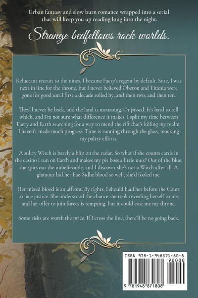 Urban fantasy and slow burn romance wrapped into a serial that will keep you up reading long into the night. Strange bedfellows rock worlds. Reluctant recruit to the nines, I became Faery's regent by default. Sure, I was next in line for the throne, but I never believed Oberon and Titania were gone for good until first a decade rolled by, and then two, and then ten. They'll never be back, and the land is mourning. Or pissed. It's hard to tell which, and I'm not sure what difference it makes. I split my time between Faery and Earth searching for a way to mend the rift that's killing my realm. I haven't made much progress. Time is running through the glass, mocking my paltry efforts. A sultry Witch is barely a blip on the radar. So what if she counts cards in the casino I run on Earth and makes my pit boss a little nuts? Out of the blue, she spits out the unbelievable, and I discover she's not a Witch after all. A glamour hid her Fae-Sidhe blood so well, she'd fooled me. Her mixed blood is an affront. By rights, I should haul her before the Court to face justice. She understood the chance she took revealing herself to me, and her offer to join forces is tempting, but it could cost me my throne. Some risks are worth the price. If I cross the line, there'll be no going back.