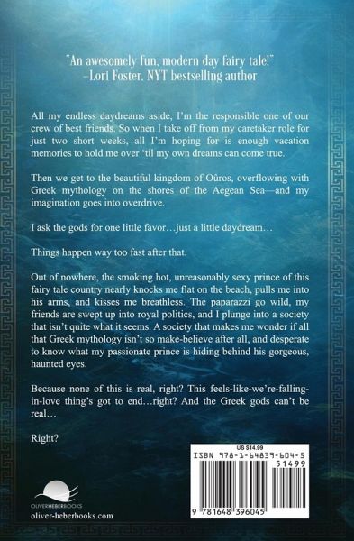 "An awesomely fun, modern day fairy tale!"-Lori Foster, NYT bestselling author All my endless daydreams aside, I'm the responsible one of our crew of best friends. So when I take off from my caretaker role for just two short weeks, all I'm hoping for is enough vacation memories to hold me over 'til my own dreams can come true. Then we get to the beautiful kingdom of Oûros, overflowing with Greek mythology on the shores of the Aegean Sea-and my imagination goes into overdrive. I ask the gods for one little favor...just a little daydream... Things happen way too fast after that. Out of nowhere, the smoking hot, unreasonably sexy prince of this fairy tale country nearly knocks me flat on the beach, pulls me into his arms, and kisses me breathless. The paparazzi go wild, my friends are swept up into royal politics, and I plunge into a society that isn't quite what it seems. A society that makes me wonder if all that Greek mythology isn't so make-believe after all, and desperate to know what my passionate prince is hiding behind his gorgeous, haunted eyes. Because none of this is real, right? This feels-like-we're-falling-in-love thing's got to end...right? And the Greek gods can't be real... Right? This book was previously released as a contemporary romance and told a story that hid the true nature of the royal family as gatekeepers of the gods. By order of Olympus, this book has been updated to set the record straight.