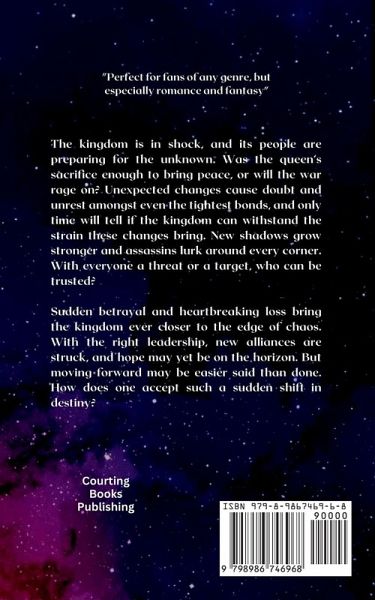 The kingdom is in shock, and its people are preparing for the unknown. Was the queen's sacrifice enough to bring peace, or will the war rage on? Unexpected changes cause doubt and unrest amongst even the tightest bonds, and only time will tell if the kingdom can withstand the strain these changes bring. New shadows grow stronger and assassins lurk around every corner. With everyone a threat or a target, who can be trusted? Sudden betrayal and heartbreaking loss bring the kingdom ever closer to the edge of chaos. With the right leadership, new alliances are struck, and hope may yet be on the horizon. But moving forward may be easier said than done. How does one accept such a sudden shift in destiny? Courting Destiny is book 2 of The Courtship Saga, an 8-book epic fantasy series that needs to be read in order. Warning: This book is fast-paced with traumatic themes that may be upsetting to some readers.