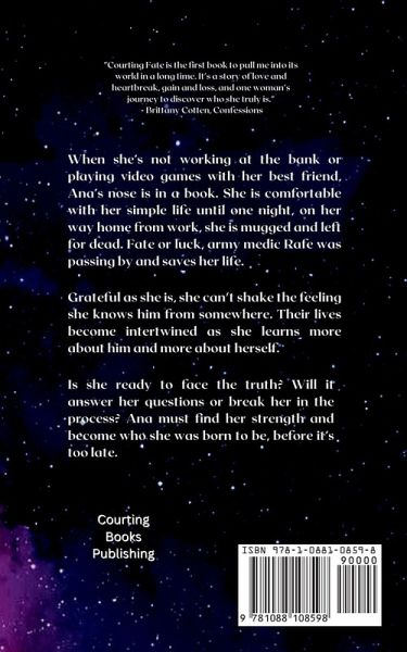 When she's not working at the bank or playing video games with her best friend, Ana's nose is in a book. She is comfortable with her simple life until one night, on her way home from work, she is mugged and left for dead. Fate or luck, army medic Rafe was passing by and saves her life. Grateful as she is, she can't shake the feeling she knows him from somewhere. Their lives become intertwined as she learns more about him and more about herself. Is she ready to face the truth? Will it answer her questions or break her in the process? Ana must find her strength and become who she was born to be, before it's too late. Warning: This book is fast-paced with traumatic themes that may be upsetting to some readers. For fans of epic fantasy, Tolkien, and more, Courting Fate is part of a series that explores serious topics while using familiar tropes. Told in third person present tense, it will keep you immersed in the story up until the very end.