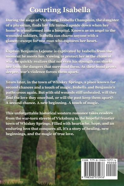 During the siege of Vicksburg, Isabella Champlain, the daughter of a physician, finds her life turned upside down when her home is transformed into a hospital. Known as an angel to the wounded soldiers, Isabella can charm anyone with a glance-except for one man who captures her heart. Captain Benjamin Lejeune is captivated by Isabella from the moment he meets her. Vowing to protect her in the chaos of war, he quickly realizes that not even his strength can shield her from the dangers that surround them. As their bond grows deeper, war's violence forces them apart. Years later, in the town of Whiskey Springs, a place known for second chances and a touch of magic, Isabella and Benjamin's paths cross again. But with old wounds still unhealed, will they find the love they once had, or will the past keep them apart? A second chance. A new beginning. A touch of magic. This unforgettable historical western romance takes readers from the war-torn streets of Vicksburg to the hopeful frontier town of Whiskey Springs. Filled with heartache, hope, and an enduring love that conquers all, it's a story of healing, new beginnings, and the magic of true love.