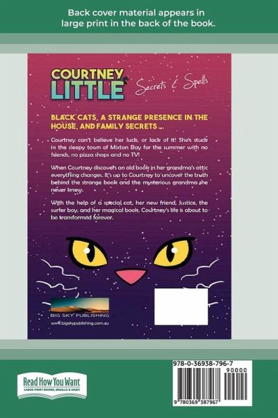 Courtney Little never knew her grandmother but it seems Delia wants to make her presence felt. Dad isn't saying why he left Mixton Bay years ago, and now strange things are happening in her gransmother's old house. When Courtney finds a mystical ''Book of Spells'' with her name on the box,and she meets Ink the talking cat, and Justice, the surfer boy with a secret of his own, her boring holiday starts to get a lot more interesting. 'Courtney is a fabulous role model for young girls and very relatable. A very cool new series'. - Kids Book Review