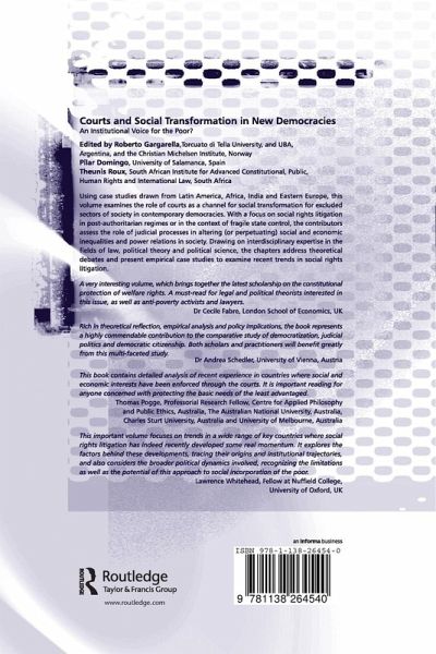Using case studies drawn from Latin America, Africa, India and Eastern Europe, this volume examines the role of courts as a channel for social transformation for excluded sectors of society in contemporary democracies. With a focus on social rights litigation in post-authoritarian regimes or in the context of fragile state control, the authors assess the role of judicial processes in altering (or perpetuating) social and economic inequalities and power relations in society. Drawing on interdisciplinary expertise in the fields of law, political theory, and political science, the chapters address theoretical debates and present empirical case studies to examine recent trends in social rights litigation.