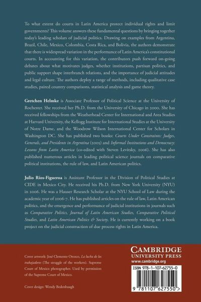 To what extent do courts in Latin America protect individual rights and limit governments? This volume answers these fundamental questions by bringing together today's leading scholars of judicial politics. Drawing on examples from Argentina, Brazil, Chile, Mexico, Colombia, Costa Rica and Bolivia, the authors demonstrate that there is widespread variation in the performance of Latin America's constitutional courts. In accounting for this variation, the contributors push forward ongoing debates about what motivates judges; whether institutions, partisan politics and public support shape inter-branch relations; and the importance of judicial attitudes and legal culture. The authors deploy a range of methods, including qualitative case studies, paired country comparisons, statistical analysis and game theory.