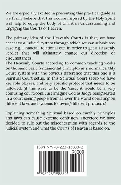 We are especially excited in presenting this practical guide as we firmly believe that this course inspired by the Holy Spirit will help to equip the body of Christ in Understanding and Engaging the Courts of Heaven. The primary idea of the Heavenly Courts is that, we have access to a Judicial system through which we can submit any case e.g. Financial, relational etc. in order to get a Heavenly verdict that will ultimately change our direction or circumstances. The Heavenly Courts according to common teaching works on the same basic fundamental principles as a normal earthly Court system with the obvious difference that this one is a Spiritual Court setup. In this Spiritual Court setup we have key role players, and very specific protocol that needs to be followed. (if this were to be the 'case', it would be a very confusing courtroom. Just imagine God as Judge being seated in a court seeing people from all over the world operating on different laws and systems following different protocols) Explaining something Spiritual based on earthly principles and laws can cause extreme confusion. Therefore we have decided to rule out the misconception with regards to the judicial system and what the Courts of Heaven is based on.