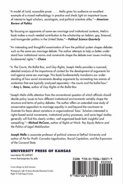 If the same-sex marriage debate tells us one thing, it's that rights do not exist in a vacuum. What works for one side at the ballot box often fails in the courtroom. Conservative opponents of same-sex marriage used appeals to religious liberty and parental rights to win ballot measure campaigns, but could not duplicate this success in court. Looking at the same-sex marriage debate at the ballot box and in the courts, this timely book offers unique insights into one of the most fluid social and legal issues of our day--and into the role of institutional context in how rights are used. Why, Joseph Mello asks, did conservative opponents of same-sex marriage enjoy such an advantage when debating this issue in the popular arena of a ballot measure campaign? And why were they less successful at mobilizing the language of rights in the courts? His analysis shows us that rights don't just entitle us to resources; they also shape the way we see ourselves and are perceived by others. Thus, by using the language of rights to frame their cause, conservative opponents of same-sex marriage were able to construe themselves as victims of oppression, their religious and moral beliefs under threat. The same language, however, proved less useful, or even counterproductive, in courtrooms, Mello concludes, because the court's norms and constraints force arguments to undergo more searching scrutiny--and rights-based arguments against same-sex marriage contain discriminatory stereotypes that cannot be supported with evidence. In its analysis of the same-sex marriage issue, The Courts, the Ballot Box, and Gay Rights provides insights that illuminate some of the most salient rights-based issues of our time--including affirmative action, abortion, immigration, and drug policy. The book offers a new way of understanding how such issues are decided, and how important context can be in determining the outcome.