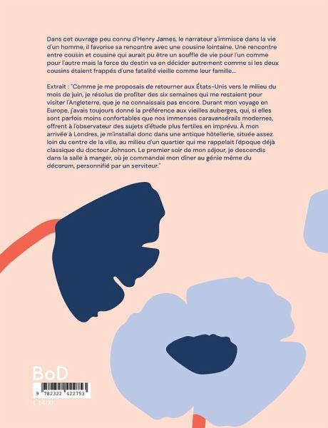 Dans cet ouvrage peu connu d'Henry James, le narrateur s'immisce dans la vie d'un homme, il favorise sa rencontre avec une cousine lointaine. Une rencontre entre cousin et cousine qui aurait pu être un souffle de vie pour l'un comme pour l'autre mais la force du destin va en décider autrement comme si les deux cousins étaient frappés d'une fatalité vieille comme leur famille...Extrait : "Comme je me proposais de retourner aux États-Unis vers le milieu du mois de juin, je résolus de profiter des six semaines qui me restaient pour visiter l'Angleterre, que je ne connaissais pas encore. Durant mon voyage en Europe, j'avais toujours donné la préférence aux vieilles auberges, qui, si elles sont parfois moins confortables que nos immenses caravansérails modernes, offrent à l'observateur des sujets d'étude plus fertiles en imprévu. À mon arrivée à Londres, je m'installai donc dans une antique hôtellerie, située assez loin du centre de la ville, au milieu d'un quartier qui me rappelait l'époque déjà classique du docteur Johnson. Le premier soir de mon séjour, je descendis dans la salle à manger, où je commandai mon dîner au génie même du décorum, personnifié par un serviteur."