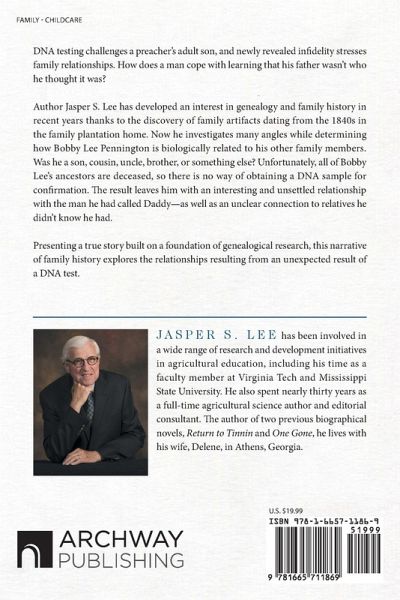 DNA testing challenges a preacher's adult son, and newly revealed infidelity stresses family relationships. How does a man cope with learning that his father wasn't who he thought it was? Author Jasper S. Lee has developed an interest in genealogy and family history in recent years thanks to the discovery of family artifacts dating from the 1840s in the family plantation home. Now he investigates many angles while determining how Bobby Lee Pennington is biologically related to his other family members. Was he a son, cousin, uncle, brother, or something else? Unfortunately, all of Bobby Lee's ancestors are deceased, so there is no way of obtaining a DNA sample for confirmation. The result leaves him with an interesting and unsettled relationship with the man he had called Daddy-as well as an unclear connection to relatives he didn't know he had. Presenting a true story built on a foundation of genealogical research, this narrative of family history explores the relationships resulting from an unexpected result of a DNA test.
