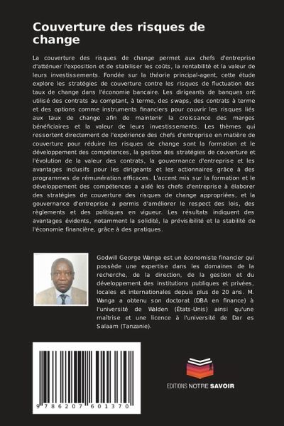La couverture des risques de change permet aux chefs d'entreprise d'atténuer l'exposition et de stabiliser les coûts, la rentabilité et la valeur de leurs investissements. Fondée sur la théorie principal-agent, cette étude explore les stratégies de couverture contre les risques de fluctuation des taux de change dans l'économie bancaire. Les dirigeants de banques ont utilisé des contrats au comptant, à terme, des swaps, des contrats à terme et des options comme instruments financiers pour couvrir les risques liés aux taux de change afin de maintenir la croissance des marges bénéficiaires et la valeur de leurs investissements. Les thèmes qui ressortent directement de l'expérience des chefs d'entreprise en matière de couverture pour réduire les risques de change sont la formation et le développement des compétences, la gestion des stratégies de couverture et l'évolution de la valeur des contrats, la gouvernance d'entreprise et les avantages inclusifs pour les dirigeants et les actionnaires grâce à des programmes de rémunération efficaces. L'accent mis sur la formation et le développement des compétences a aidé les chefs d'entreprise à élaborer des stratégies de couverture des risques de change appropriées, et la gouvernance d'entreprise a permis d'améliorer le respect des lois, des règlements et des politiques en vigueur. Les résultats indiquent des avantages évidents, notamment la solidité, la prévisibilité et la stabilité de l'économie financière, grâce à des pratiques.