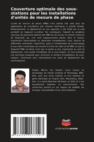 L'unité de mesure de phase (PMU) s'est avérée très utile pour les applications de surveillance des réseaux électriques à grande échelle. Historiquement, le déploiement de ces appareils a été limité par le coût prohibitif de l'appareil lui-même. Par conséquent, l'objectif du problème classique de placement optimal des PMU est de trouver le nombre minimum de dispositifs qui, s'ils sont soigneusement placés dans le réseau, maximisent l'observabilité ou observent complètement, sous réserve de différentes contraintes. Aujourd'hui, grâce à l'amélioration de la technologie et aux relais numériques qui servent à la fois de relais et de PMU, le coût du dispositif PMU lui-même n'est pas la partie la plus importante du coût de déploiement, mais plutôt l'installation de la sous-station. Ce livre présente une technique proposée pour minimiser le nombre d'installations de sous-stations, minimisant ainsi indirectement les coûts de déploiement des synchrophases.