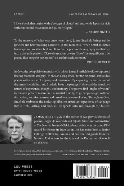 In Cove, the compulsive intensity with which James Brasfield seeks to capture a fleeting moment's imagery, "to choose a song sown / for the moment," imbues his poems with a sense of urgency and movement. By exploring the translation of the sensory world into art, Brasfield faces the passage of time and the transitory nature of experience, thought, and memory. The poems find "angles of vision" to rescue a present instant in its essential fluidity, to go deep enough, without distraction, into the moment and reveal touchstones of being. Throughout Cove, Brasfield embraces the enduring effort to create an experience of language that is rich, lasting, and true, as life speeds into and through the future.
