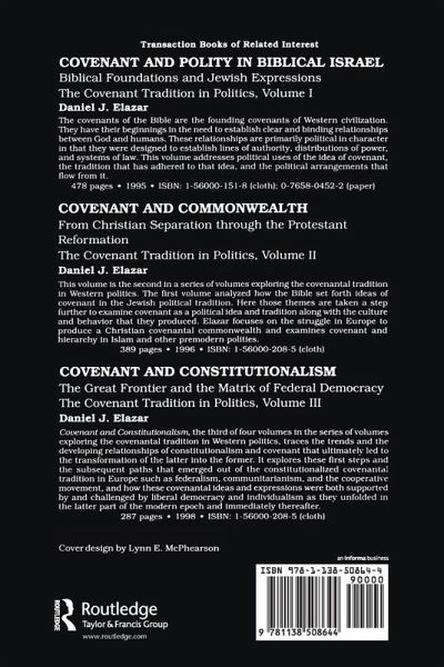 The essence of the covenant tradition is the idea of human beings freely associating for common purposes through pacts of mutual commitment. In the political realm, the idea of covenant has been particularly influential in frontierlands. Reinformed by the idea of the federated commonwealth that emerged out of the Protestant Reformation, covenant eventually fostered the establishment of the United States of America and our modern idea of federalism. More recently, these great products of the covenant tradition helped to bring about the collapse of twentieth-century totalitarianism and fueled a new spirit in contemporary political life throughout the world. A return to political covenantalism seems to be an appropriate response to the crisis of modern civilization and the new epoch after World War II. Covenant and Civil Society is the final volume in Elazar's monumental series The Covenant Tradition in Politics. In it, he traces the tradition's rebirth and development in the modern epoch.Covenant and Civil Society also considers issues of communal solidarity on a postmodern basis. Elazar traces the transition from the covenanted commonwealth of the Protestant Reformation to the civil society of the modern epoch, and explores the covenant's role in the modern statist era and the development of modern democracy. Scandiriavia, and the Latin-Germanic borderlands, many of which are typically thought of as examples of organic or hierarchical models. Elazar argues that a covenantal model is more appropriate and is part of the Western tradition as such.The book concludes with examination of the present and future of covenantal thought. Today, the global spread of federalism, most clearly seen in the formation of the European Union, is also seen in local and private arenas. Elazar considers the benefits of covenantal thought while balancing such optimism with a realistic sense of its limits. As a prescription for change, Covenant and Civil Society is a fundamental and original contribution. Along with the previous volumes in this series, all available from Transaction, it will be of deep interest to historians, social scientists, political theorists, and theologians of all persuasions.