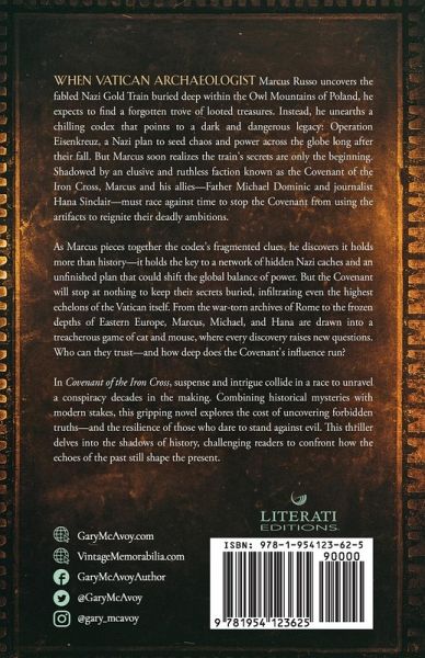 When Vatican archaeologist Marcus Russo uncovers the fabled Nazi Gold Train buried deep within the Owl Mountains of Poland, he expects to find a forgotten trove of looted treasures. Instead, he unearths a chilling codex that points to a dark and dangerous legacy: Operation Eisenkreuz, a Nazi plan to seed chaos and power across the globe long after their fall. But Marcus soon realizes the train's secrets are only the beginning. Shadowed by an elusive and ruthless faction known as the Covenant of the Iron Cross , Marcus and his allies-Father Michael Dominic and journalist Hana Sinclair-must race against time to stop the Covenant from using the artifacts to reignite their deadly ambitions. As Marcus pieces together the codex's fragmented clues, he discovers it holds more than history-it holds the key to a network of hidden Nazi caches and an unfinished plan that could shift the global balance of power. But the Covenant will stop at nothing to keep their secrets buried, infiltrating even the highest echelons of the Vatican itself. From the war-torn archives of Rome to the frozen depths of Eastern Europe, Marcus, Michael, and Hana are drawn into a treacherous game of cat and mouse, where every discovery raises new questions. Who can they trust, and how deep does the Covenant's influence run? In Covenant of the Iron Cross, suspense and intrigue collide in a race to unravel a conspiracy decades in the making. Combining historical mysteries with modern stakes, this gripping novel explores the cost of uncovering forbidden truths-and the resilience of those who dare to stand against evil. This thriller delves into the shadows of history, challenging readers to confront how the echoes of the past still shape the present.