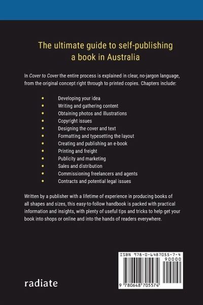 The perfect guide to self-publishing a book in Australia. The entire process is explained in clear, no-jargon language, from your original concept right through to printed copies. Chapters in this fully revised second edition include: ¿Developing your idea ¿Writing and gathering content ¿Obtaining photos and illustrations ¿Copyright issues ¿Designing the cover and text ¿Formatting and typesetting the layout ¿Creating and publishing an e-book ¿Printing and freight ¿Publicity and marketing ¿Sales and distribution ¿Commissioning freelancers and agents ¿Contracts and potential legal issues Written by a publisher with a lifetime of experience in producing books of all shapes and sizes, this easy-to-follow handbook is packed with practical information and insights, with truckloads of useful tips and tricks to help get your book into shops or online and into the hands of readers everywhere.