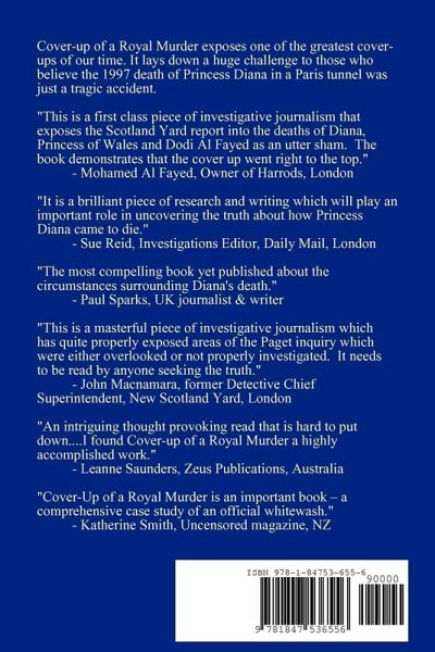 Cover-up of a Royal Murder is a thorough investigation of the British inquiry - the Paget report - into the deaths of Diana, Princess of Wales and Dodi Fayed. It uses eye-witness, documentary and other evidence to prove that the conclusions drawn in the Paget report are fundamentally flawed -- yet it is the Paget report that is set to form the basis for the upcoming British inquest. This is the book that proves beyond reasonable doubt that Princess Diana was murdered and that there is a lot more to the Paris crash than the French and British investigations have revealed. "Cover-up" provides credibility to the lingering doubts of a large section of the British and international public -- doubts that remain even 10 years after the crash. This book lays down a huge challenge to those who believe the death of Diana Princess of Wales was just a tragic accident. Cover-up of a Royal Murder exposes one of the greatest cover-ups of our time.