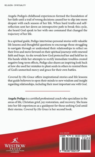 Angela Pedigo's childhood experiences formed the foundation of her faith until a trail of wrong decisions caused her to slip into more despair with each season of her life. When hard truths and self-reflection sent her down an introspective path to break this cycle, she heard God speak to her with one command that changed the trajectory of her life. In a spiritual guide, Pedigo intertwines personal stories with valuable life lessons and thoughtful questions to encourage those struggling to navigate through or understand their relationships to reflect on their lives and move forward on their spiritual journeys with renewed faith and hope. As she reveals how God protected her and held her in His hands while her attempts to rectify immediate troubles created negative long-term effects, Pedigo also shares an inspiring look back at how she used her mistakes to plant seeds in others to remind them of God's unmerited mercy and grace for their own battles. Covered by His Grace offers inspirational stories and life lessons that guide believers to open their minds to new wisdom and insight regarding relationships, including their most important one with God.